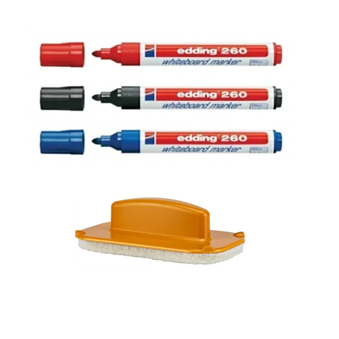 Kutudan çıkan özel silinebilir kalem ile kullanmanızı tavsiye ederiz. Ayrıca piyasadaki tüm beyaz tahta kalemleriyle uyumludur.
